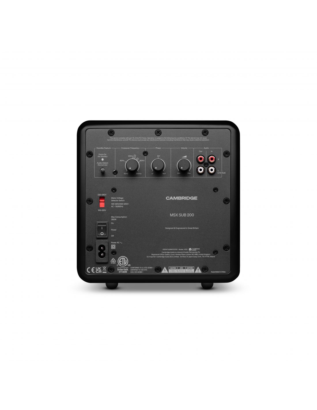 Très compact, le caisson de basses actif Cambridge MSX200 offre une puissance de sortie constante et maîtrisée, grâce à un amplificateur dédié de 200W garantissant que les basses restent précises quel que soit le volume d'écoute. Au sein du MSX200, un haut-parleur actif de 165mm est associé à deux radiateurs passifs afin de déplacer l'air de manière plus efficace et élargir ainsi la réponse dans les basses fréquences - tout en endiguant toute distorsion éventuelle. Le MXS200 intègre un DSP qui gère la sortie et la réponse en fréquence. Stabilité et clarté sont assurées à tous volumes. Et pour ne rien gâcher, chaque caisson de basses MXS200 est réglé à l'oreille par les ingénieurs Cambridge : la priorité est donnée à la musicalité, et à des basses qui servent réellement la performance.