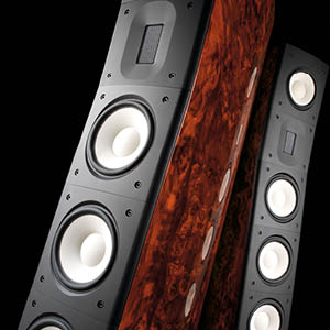 Tweeters à ruban isodynamique, haut-parleurs médium/grave à membrane céramique et transducteur de graves à membrane sandwich aluminium et céramique, tissent un délicat canevas phonique qui électrise le purisme des plus irréductibles mélomanes. Des composantes à la pesanteur révélatrice : tweeters et autres transducteurs, appuyés par des aimants particulièrement qualitatifs - et donc lourds - sont aptes à résister aux charges les plus exigeantes.